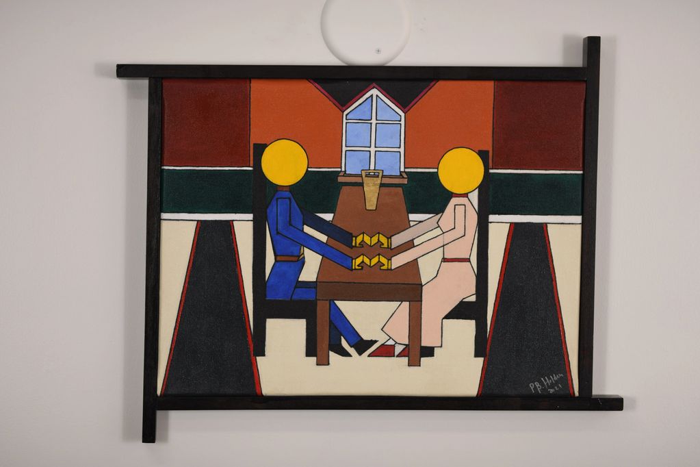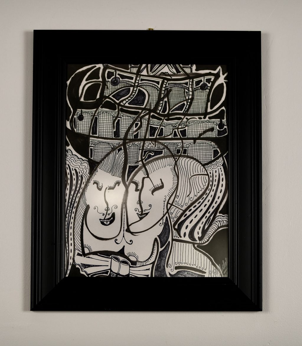 The artist often surrounded himself with people and observed the way they choose to live. Inspired by this, the artist painted restrictions. Many of us have created an image and a lifestyle that prevents us from truly being ourselves. The wire around the figures represents the restrains and fears of truly expressing ourselves and the fear of being hurt. In the middle of the painting, a carnivoro